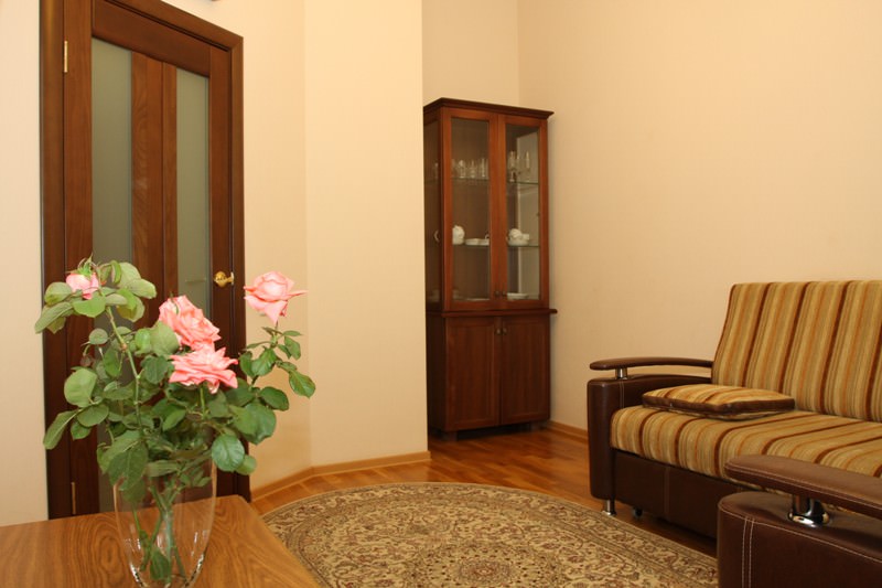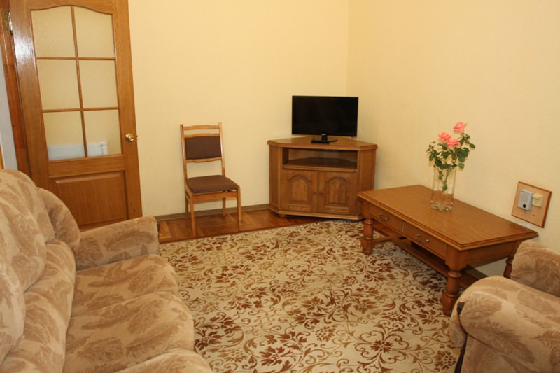 В номере имеются 2 комнаты. Для гостей предусмотрена большая двуспальная кровать.
