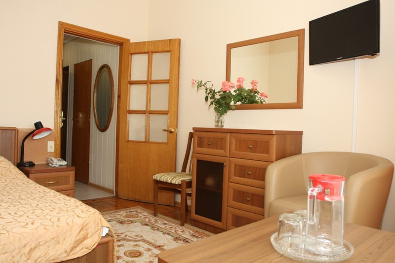 В наличии холодильник, фен и чайник. Для гостей предусмотрены набор посуды и комплект полотенец.